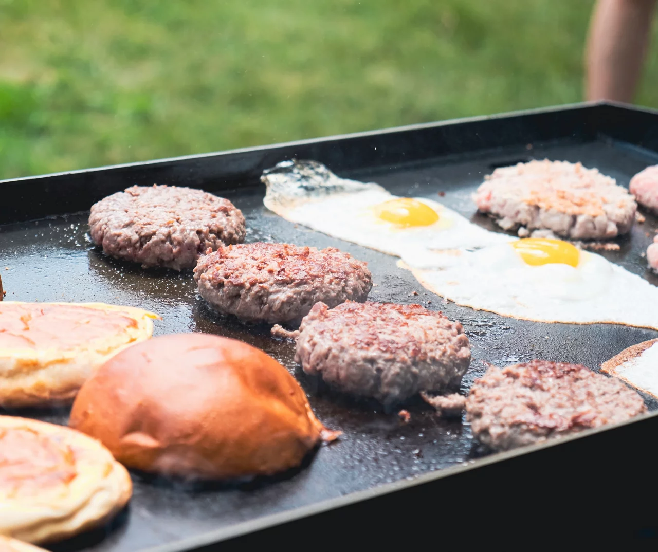 - Thick, rolled steel pre-seasoned cooking griddle top