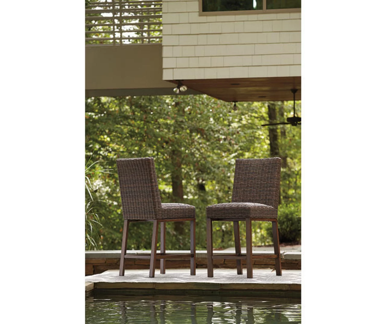 Pretty enough for trendy interiors, yet durable enough to weather the elements, this outdoor bar stool set rises to the challenge beautifully. Handwoven resin wicker over rust-proof aluminum merges high style with low maintenance. Rest assured, the exposed frames only look like wood. Their sturdy aluminum construction is perfectly suited for alfresco living.
