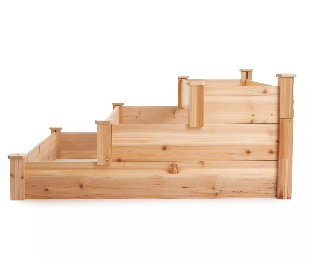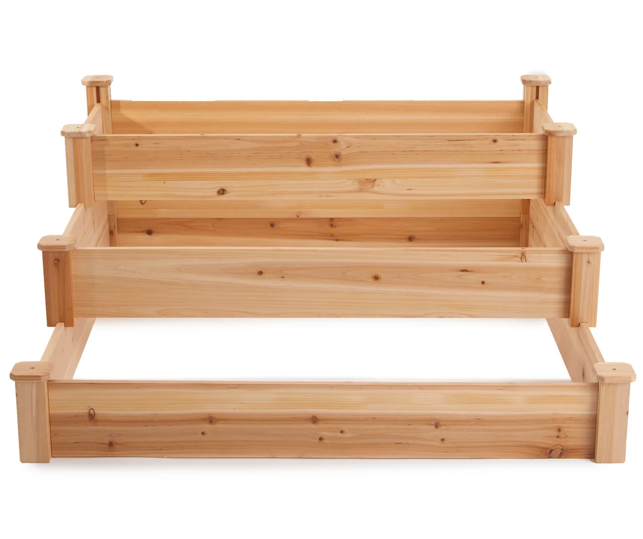 Stack and grow greenery and more with these tiered raised garden beds! Made of durable fir wood, each box is designed with a different depth for growing plants and vegetables with varying root lengths. Stack the planters together or lay each section out in a line for all your growing garden needs.