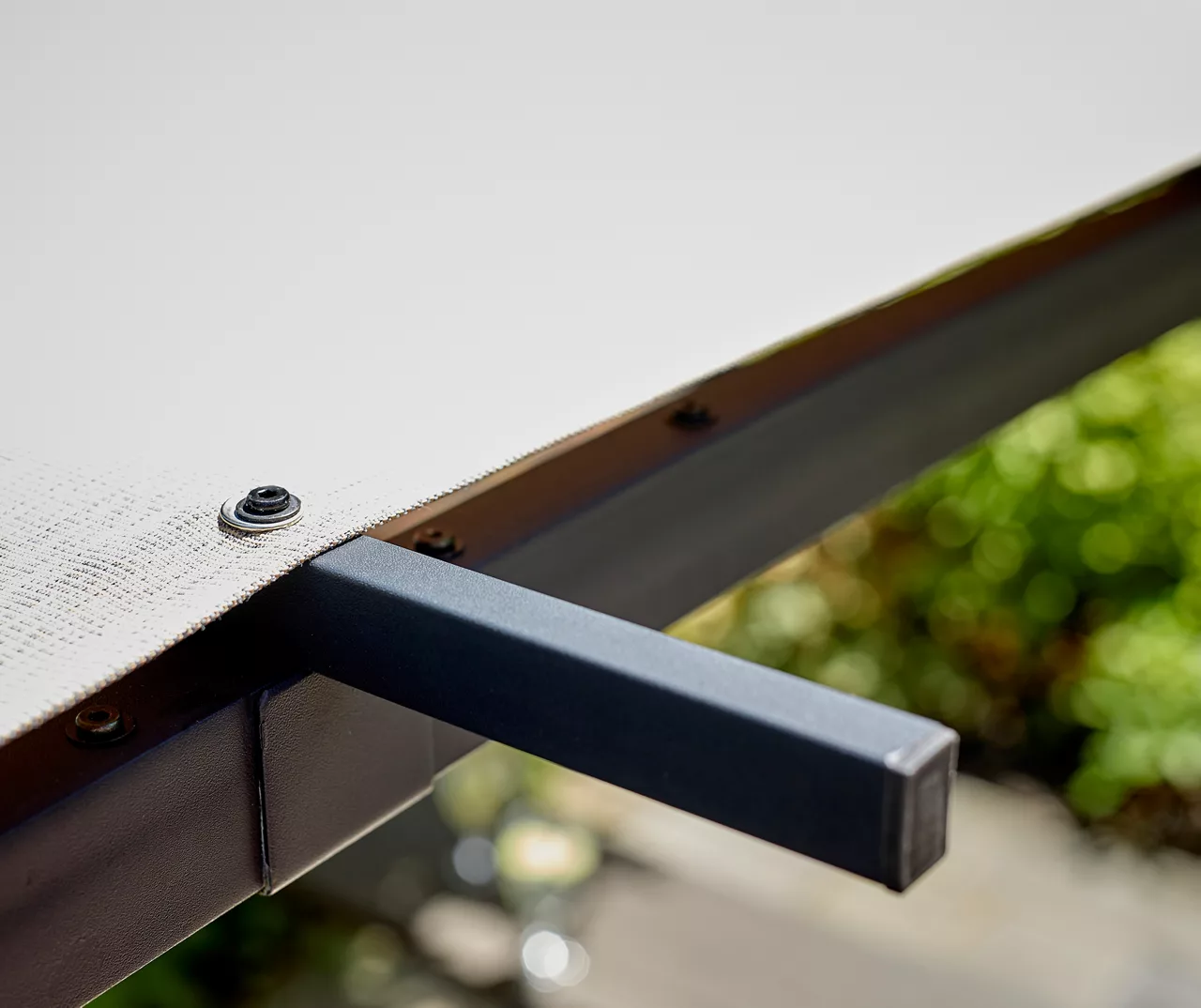 - Light-filtering sling canopy provides shade and comfort while allowing breezy airflow