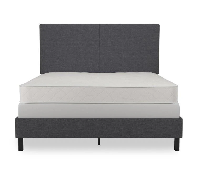 The “less-is-more” concept is perfectly embodied by the DHP Jazmine upholstered bed. This chic and minimalistic bed features a solid headboard, decorated with beautiful upholstery for a touch of warmth, making this bed a great complement to any bedroom. The Jazmine is constructed in sturdy wood and metal frame, with center legs for added support. Complete it with a foundation, a mattress, some duvets and pillows (sold separately) and sleep your night away .