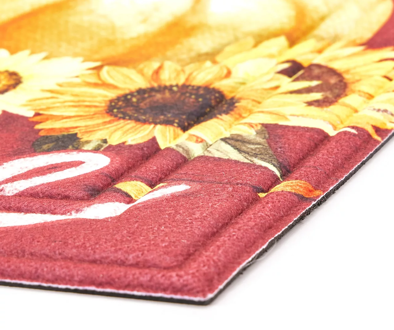 Crafted from durable crumb rubber, this decorative doormat from the Autumn Air collection brings seasonal style to your entryways. Grooved borders help to catch excess dirt and debris while the sunflower design greets guests with autumnal appeal.