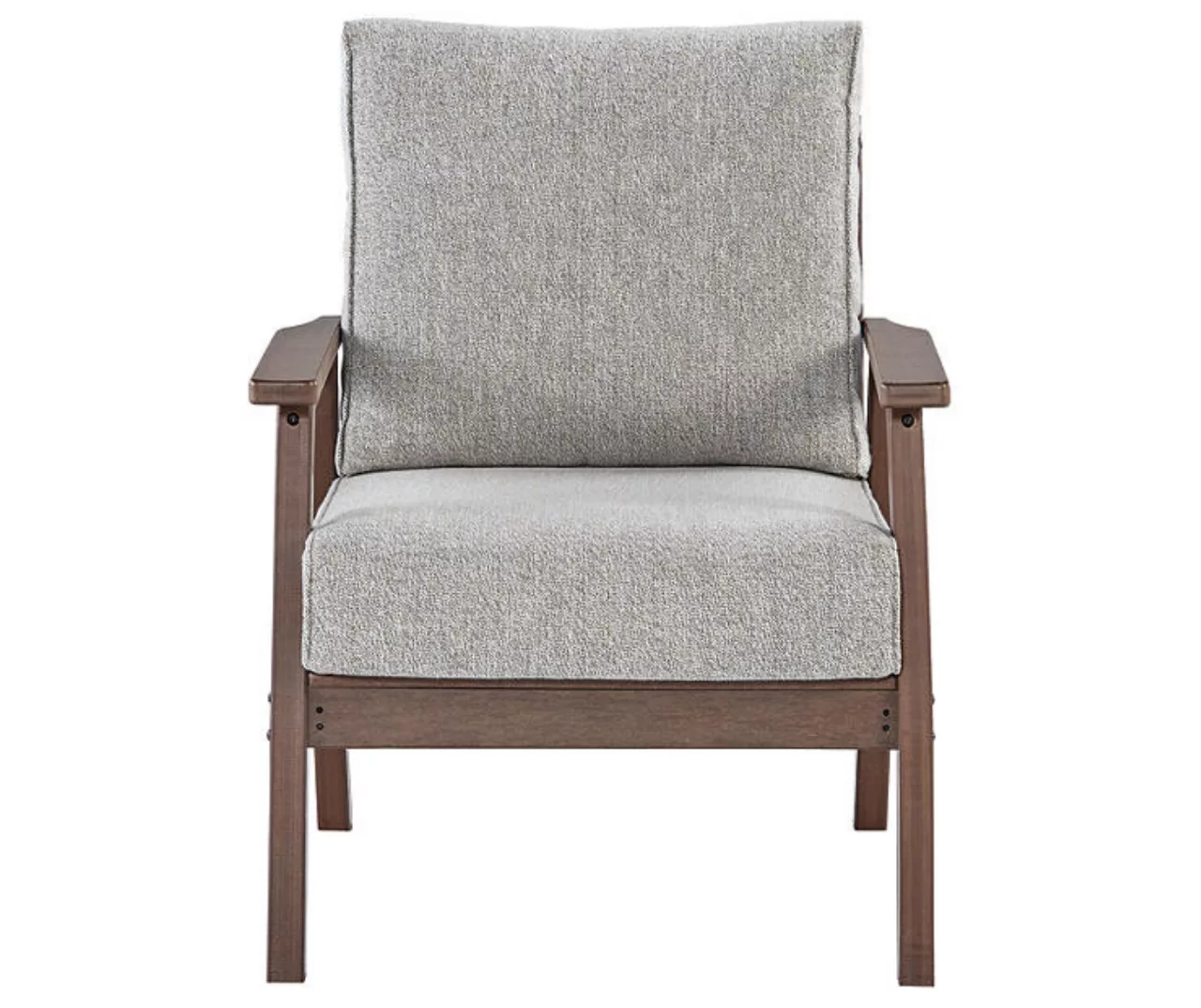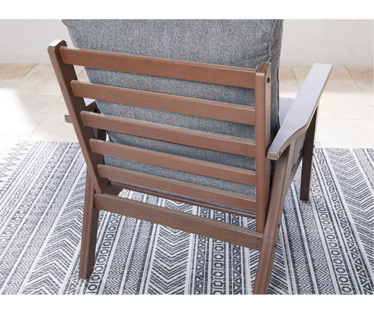 Get back to nature with the relaxed styling of this outdoor lounge chair set. Crafted of Mega Tuff HDPE material, it combines the exceptional durability and weather resistance you need with the “wood look” you love. Rest assured, the cushions are wrapped in comfortable and carefree Nuvella fabric, leaving you plenty of time to sit back and smell the roses.