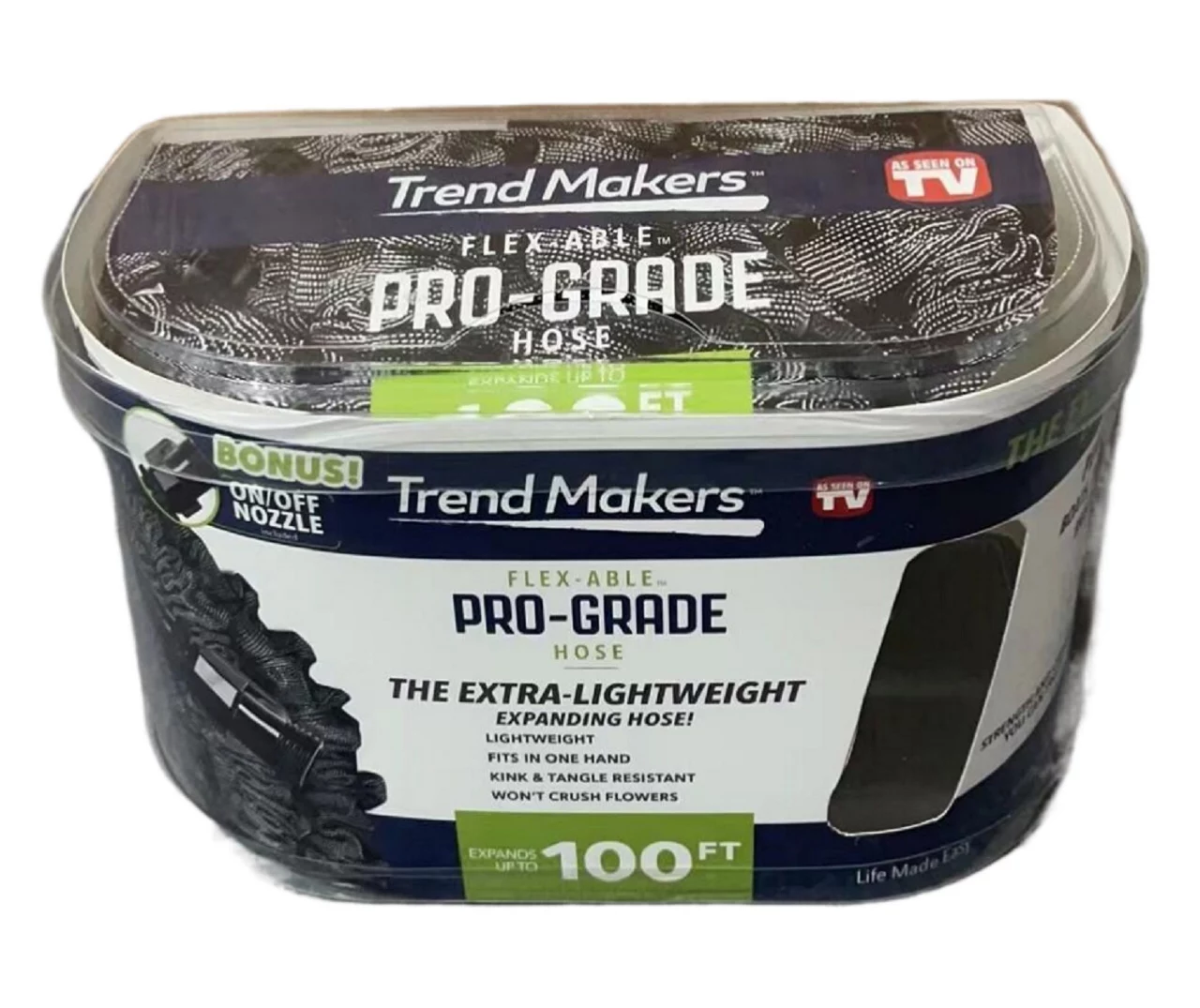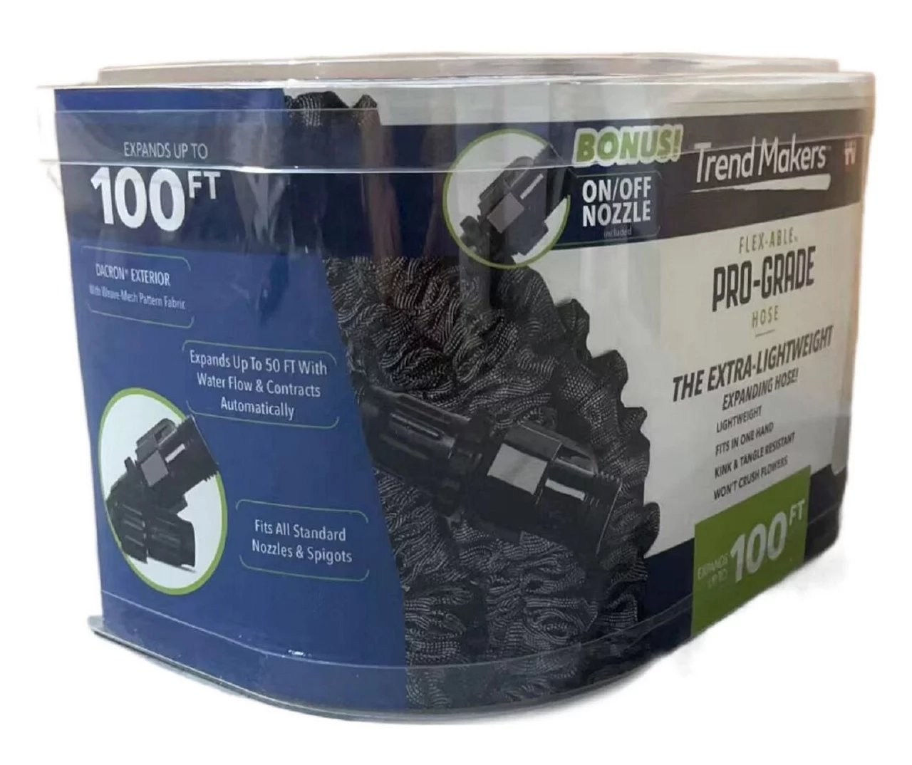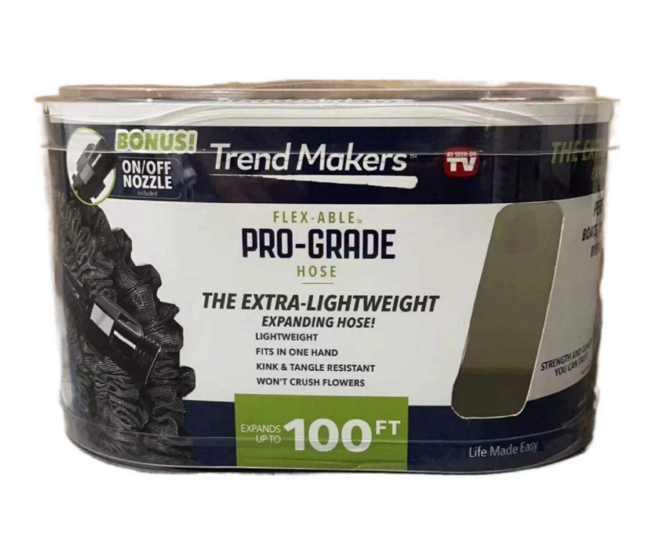 Run-of-the-mill, traditional hoses are a thing of the past. This Flex-Able expanding hose is the remedy to all of the problems that traditional hoses bring to the table. Able to expand up to 100 feet, this durable, kink and tangle resistant hose is the superior alternative that you never knew you needed.