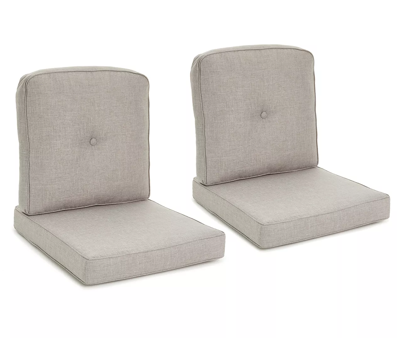 - Plush polyester fabric and fill seating in a neutral gray hue