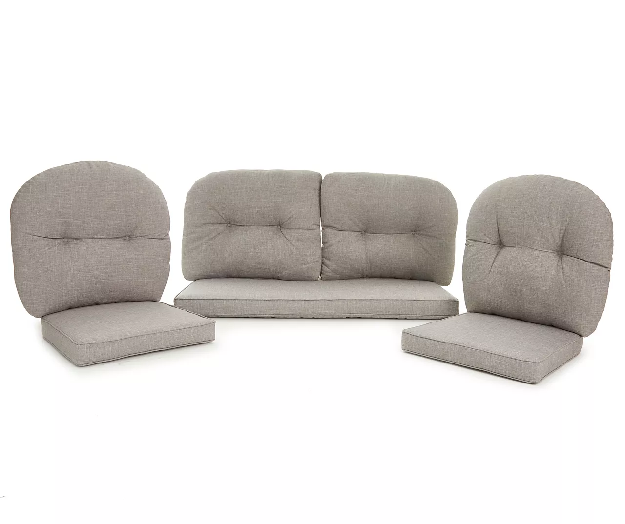 - Plush polyester fabric and fill seating in a neutral gray hue