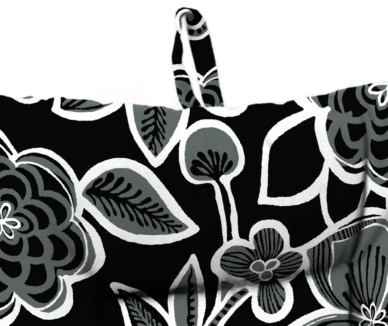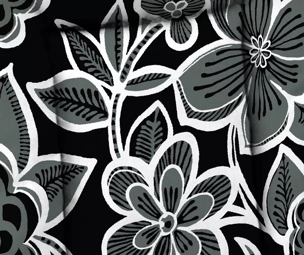 - White and gray floral design on a contrasting black background