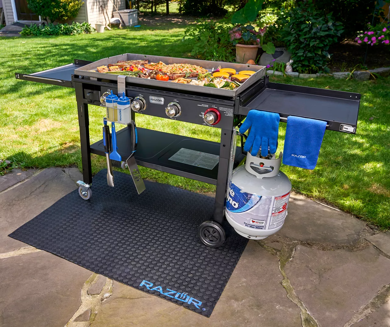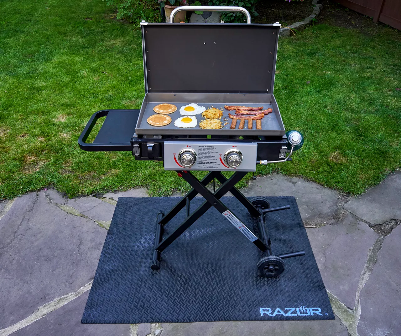 The Razor heavy-duty griddle mat is the only way to protect your deck or patio from spills or stains. Designed to fit under all Razor griddles, the embossed non-slip PVC is the solution to every gridler’s problem. Heat-resistant and easy to clean, you’ll never find a better fit for your Razor griddle.