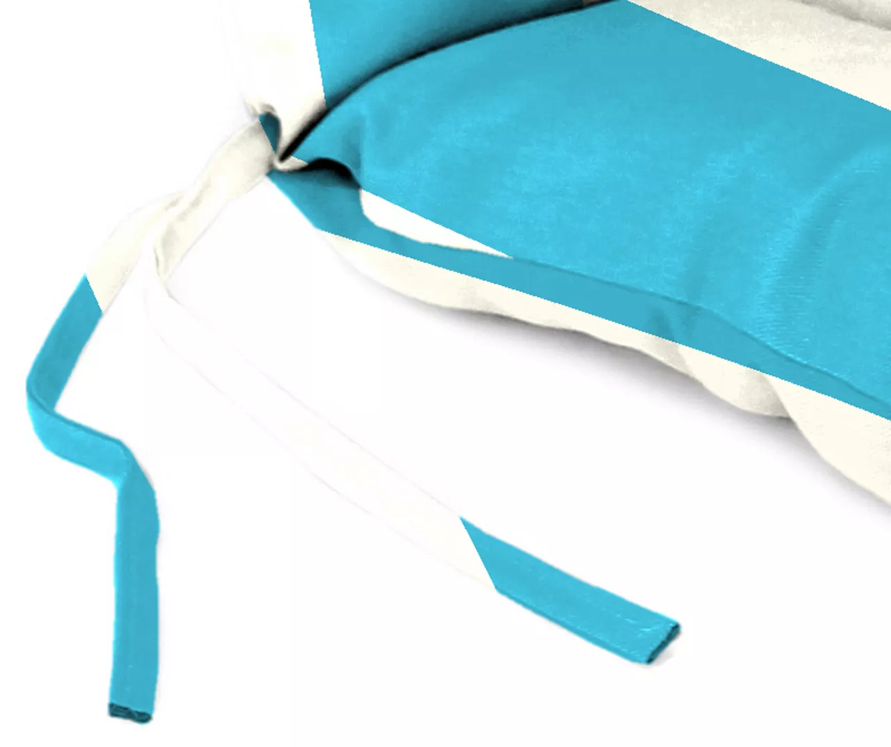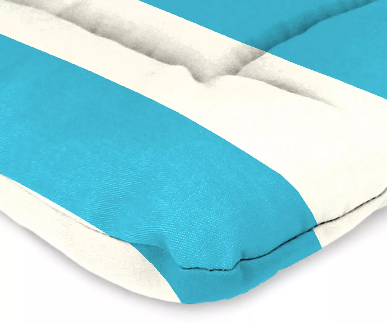 - Lovely Euro-style outdoor chair cushion with a charming white and turquoise cabana striped pattern