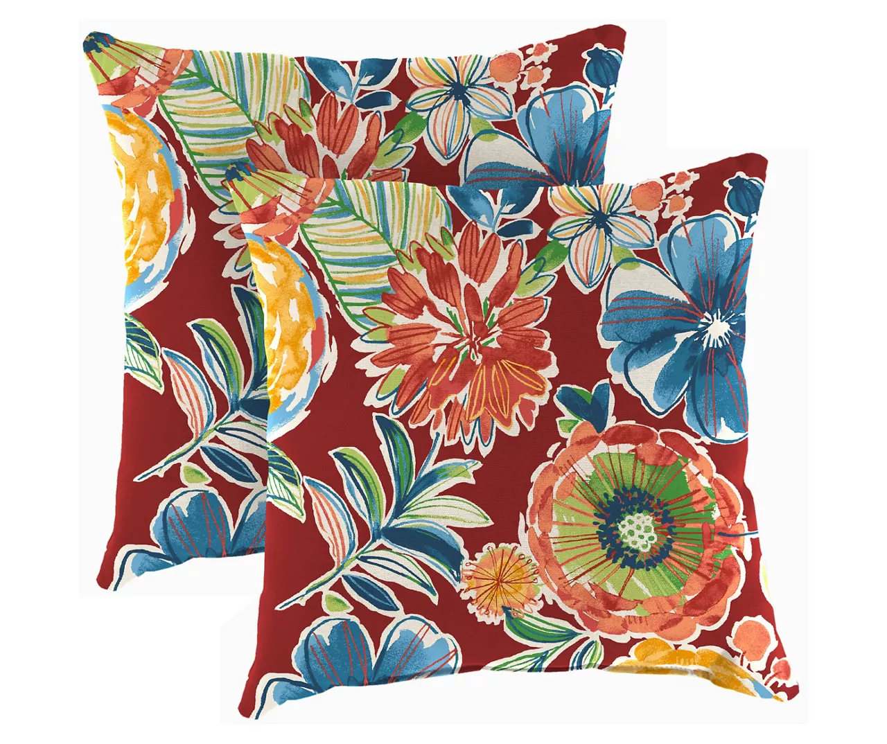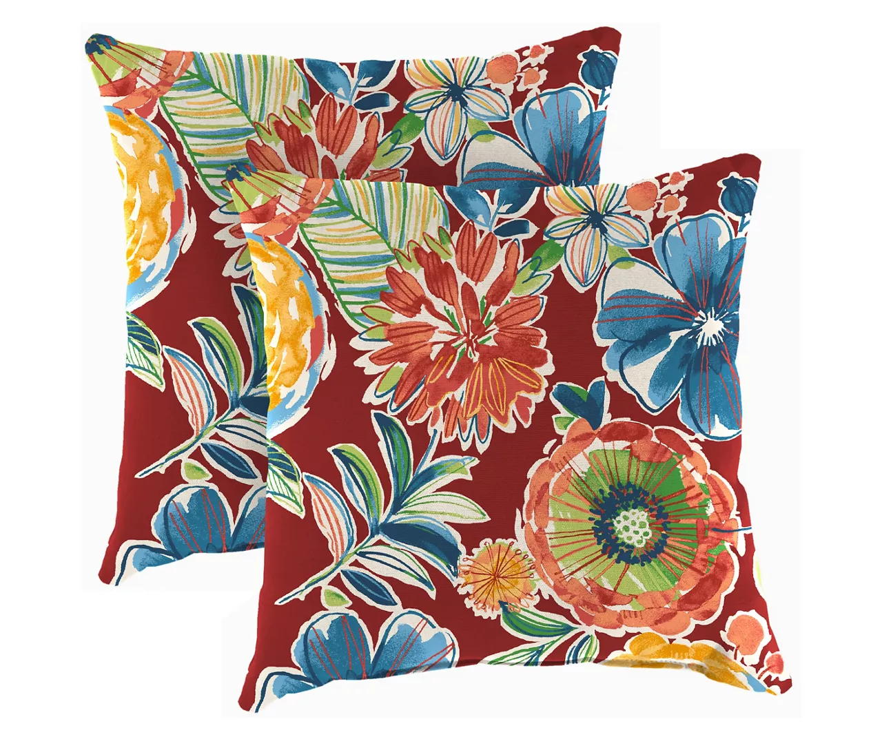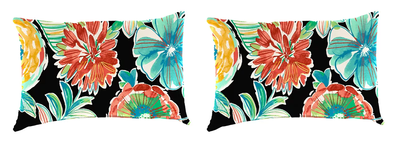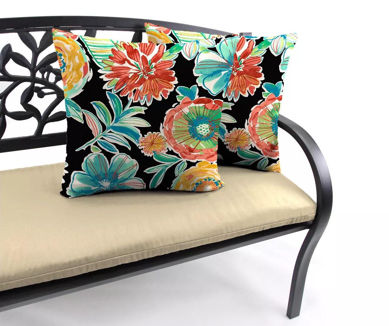 - Deep black outdoor throw pillows with a colorful floral pattern