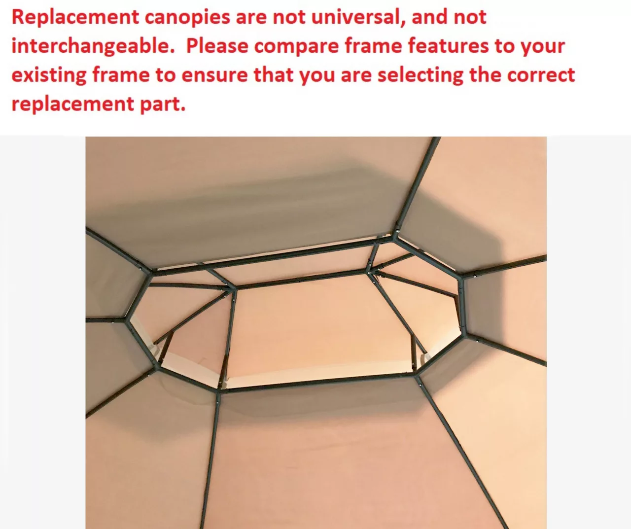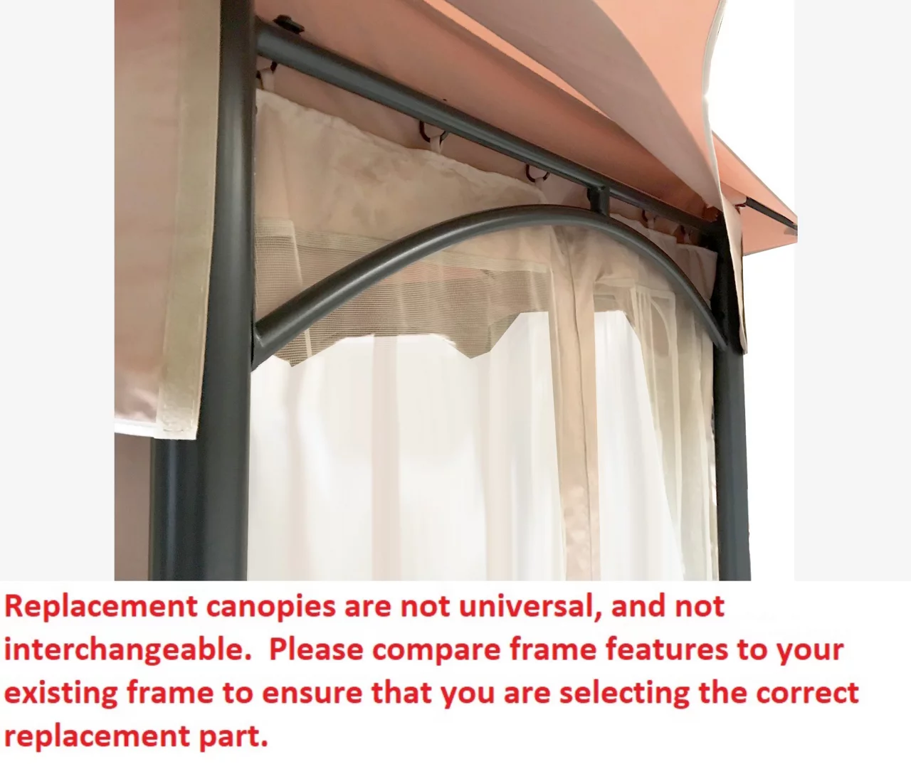 - This replacement canopy top cover and side mosquito netting will not fit any other gazebo frame