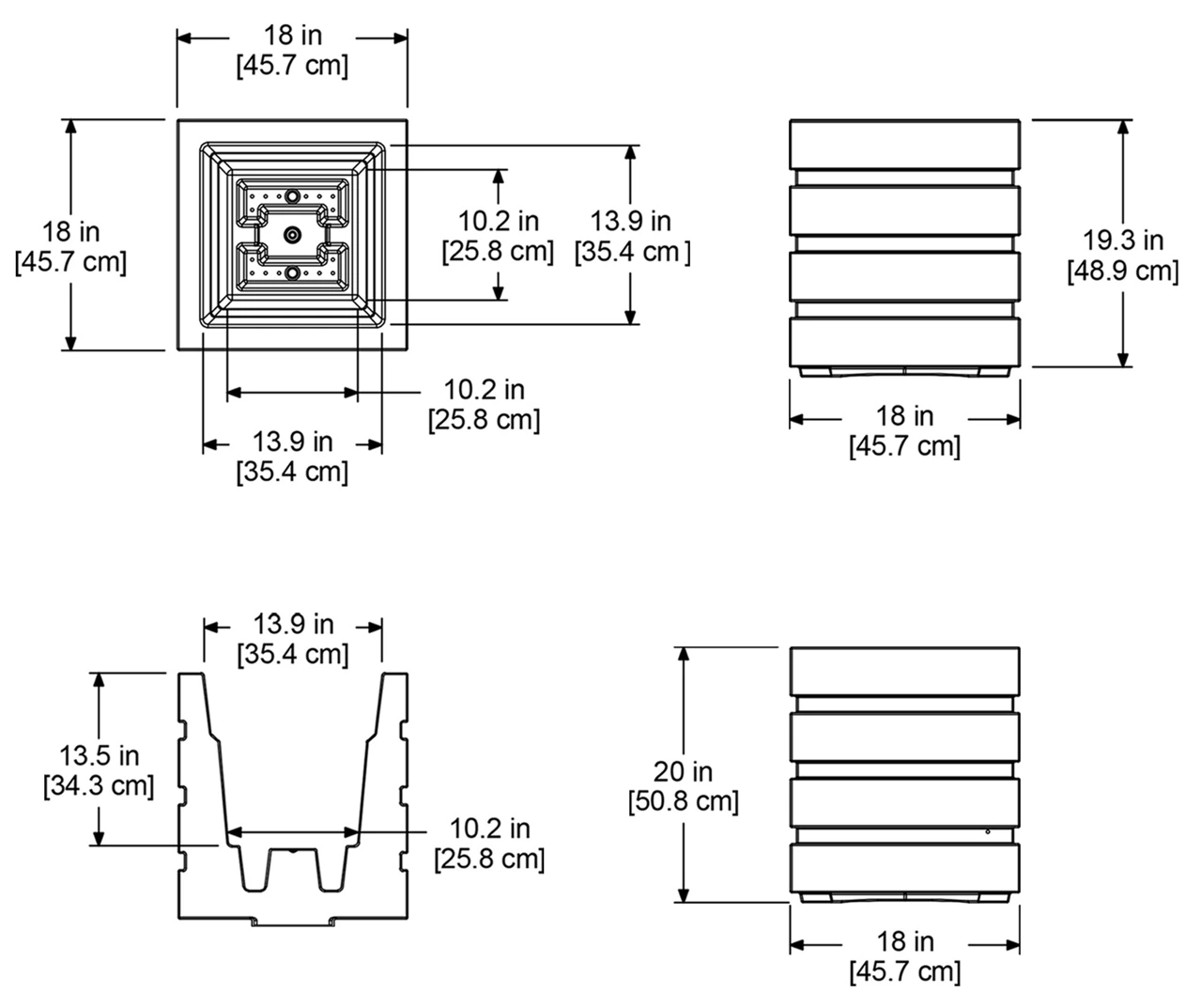 - 18″L x 18″W x 20″H