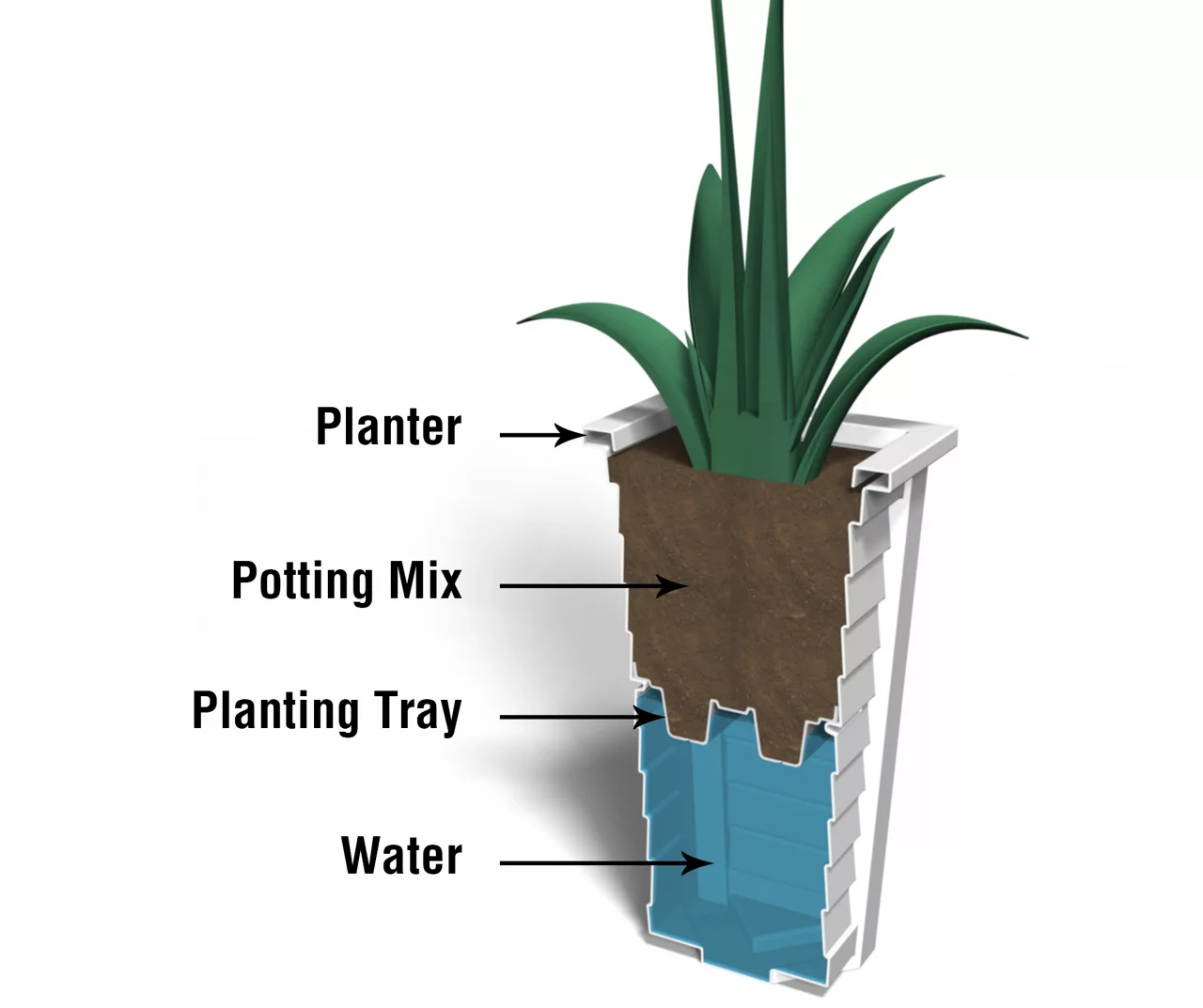 - Self watering tray insert creates sub-irrigation water system and encourages root growth