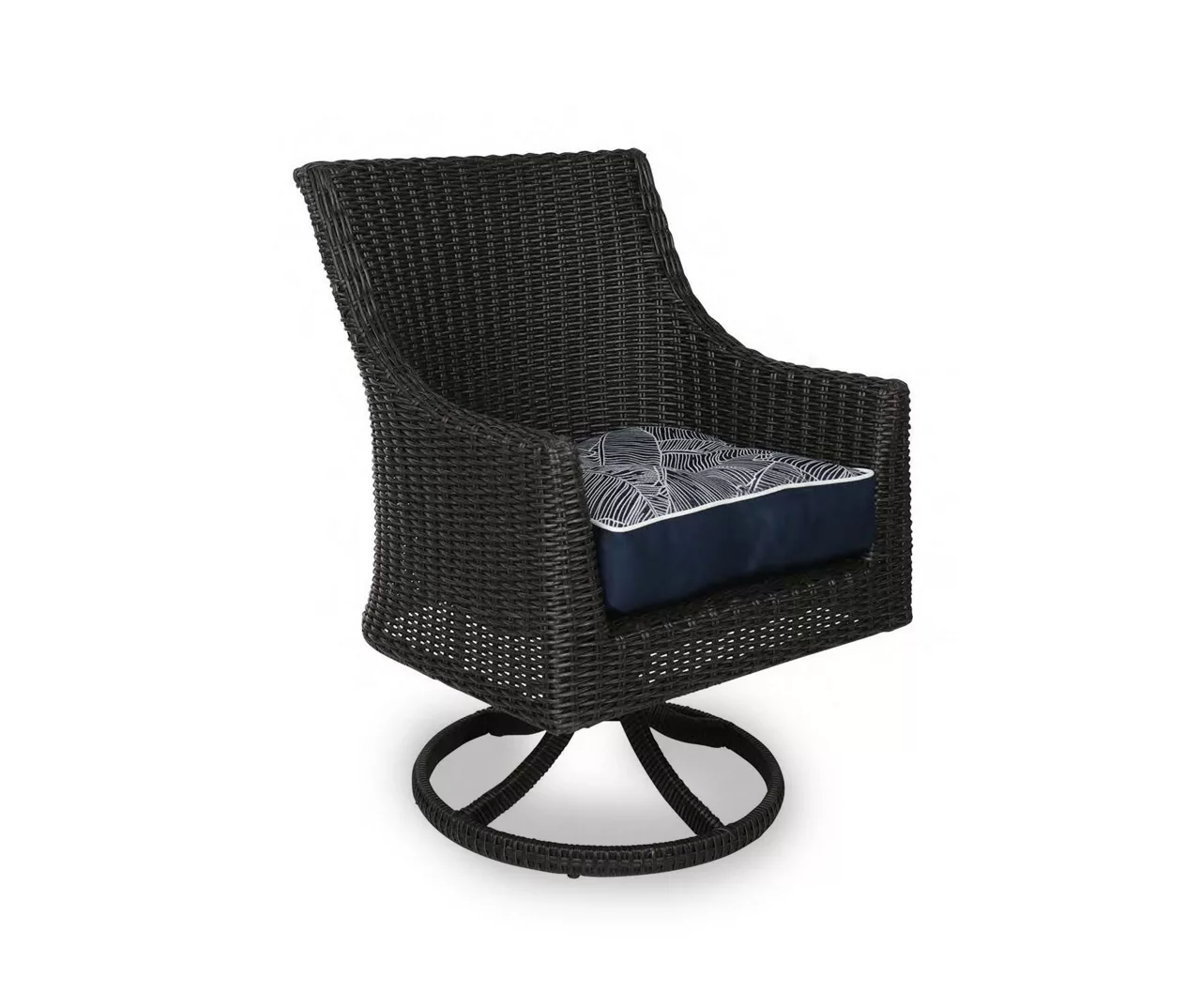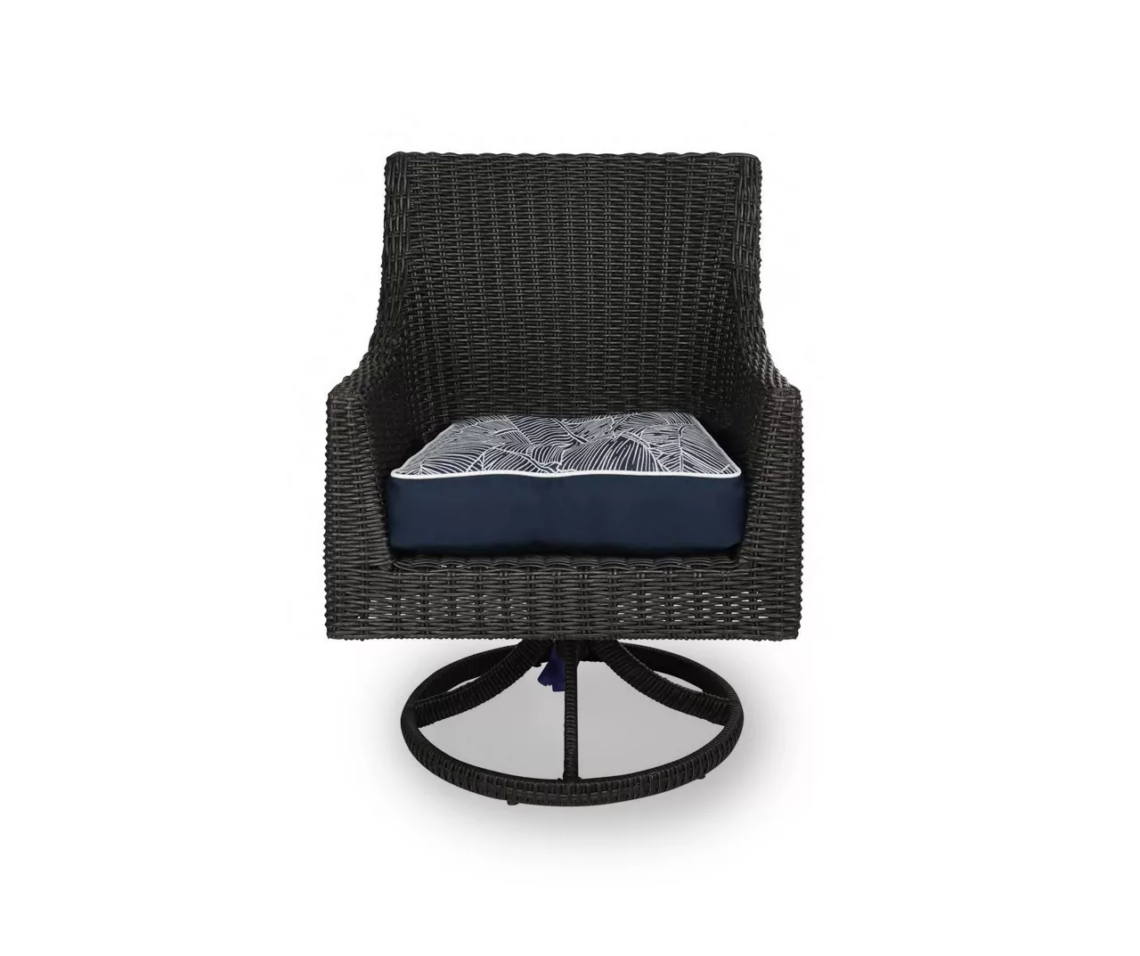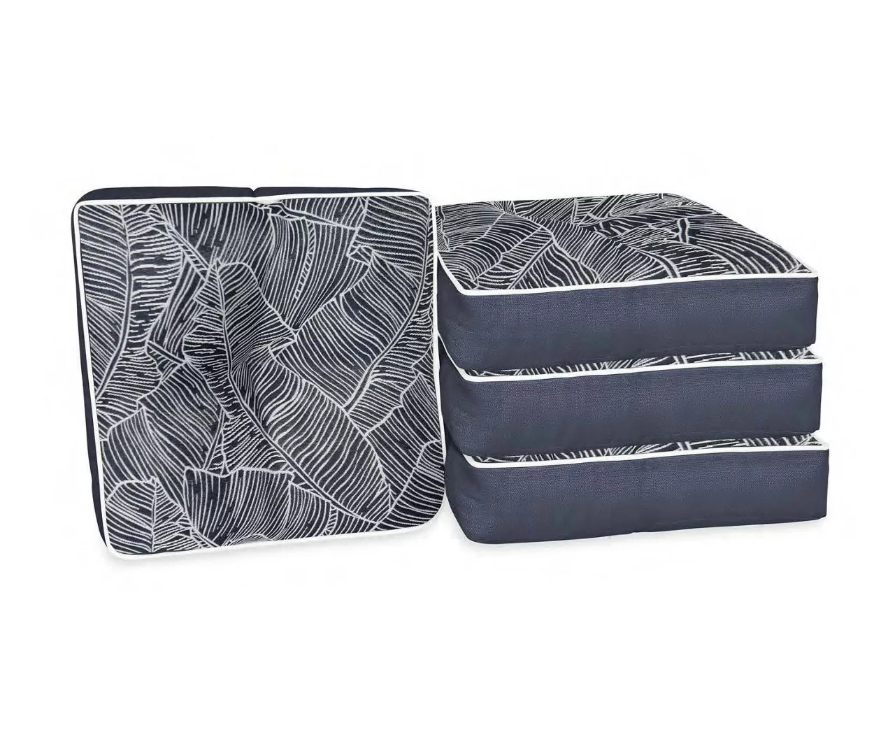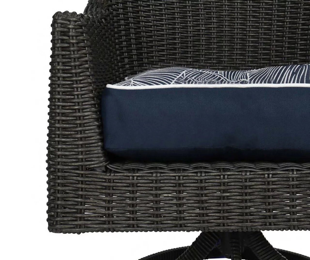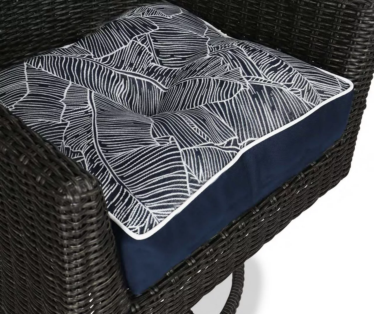 - Navy blue and white banana leaf pattern seat tops with solid navy blue sides
