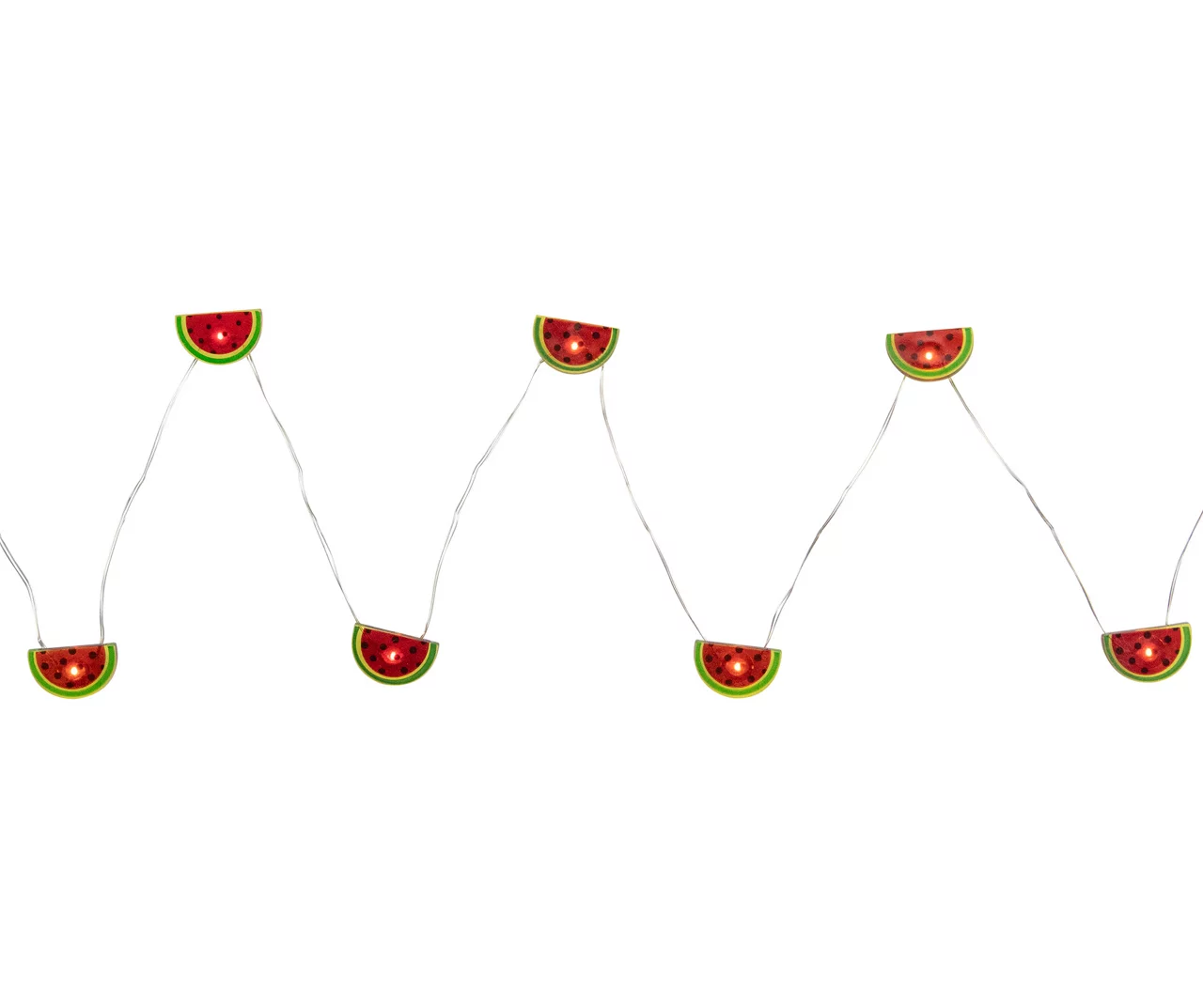 These small long-lasting red and green watermelon shaped LED wire fairy lights will induce personality to your decor. The ultra-slim pliable wire means that these lights are extremely versatile. The lights can be easily stretched and shaped to accommodate your decorating needs. Perfect for adding some holiday magic to a wreath, tree, garland or add to your lanterns and vases for some sparkle.