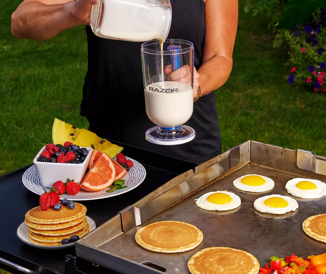 Perfect for pancakes, waffles, cupcakes and funnel cakes, the Razor batter dispenser is your go-to tool when you need just the right amount. The wide opening allows mess free filling without any spills and the easy shut off valve helps you measure exactly how much batter you need with a simple squeeze. With a sizable 900 mL capacity, you can’t go wrong with this one.