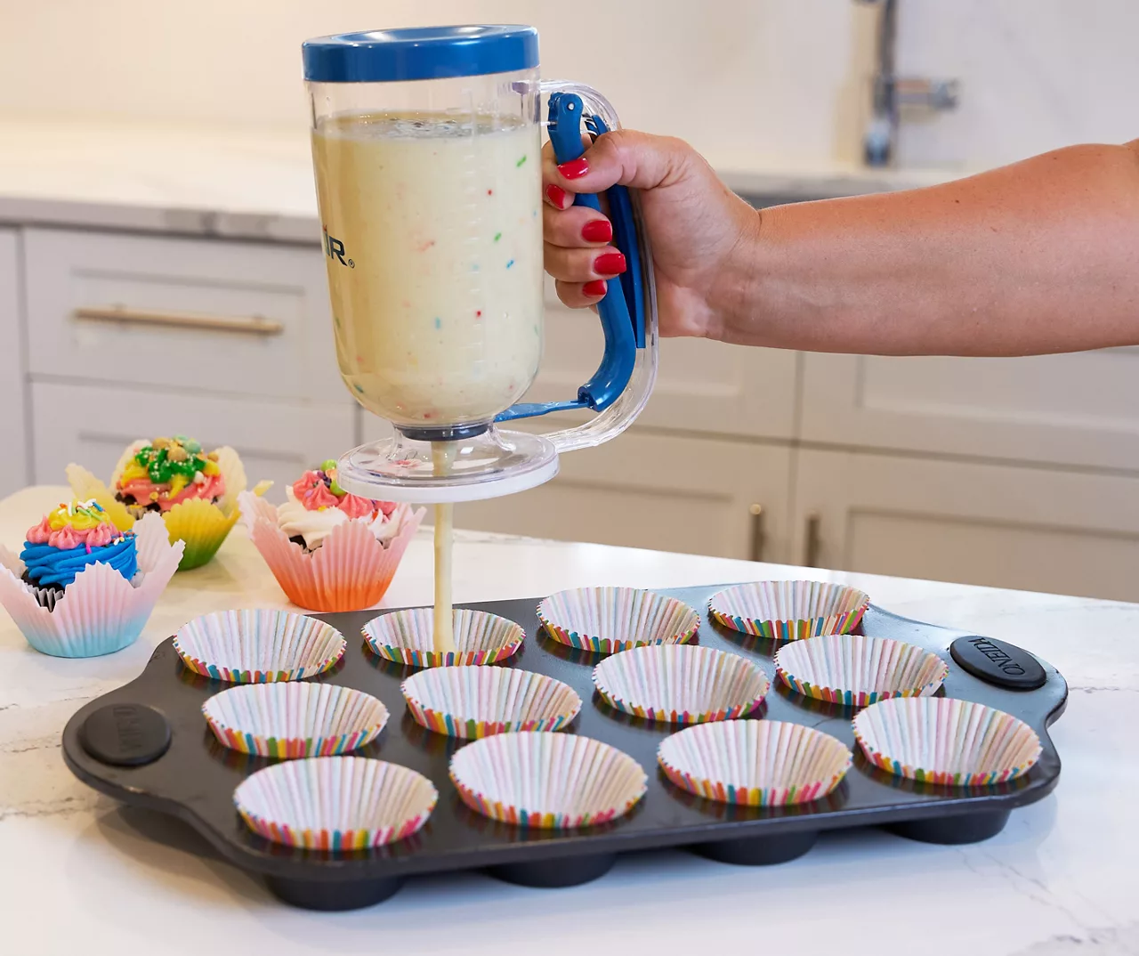 - Easily and accurately dispense cupcake, pancake, crepe, waffle and most other batters and sauces