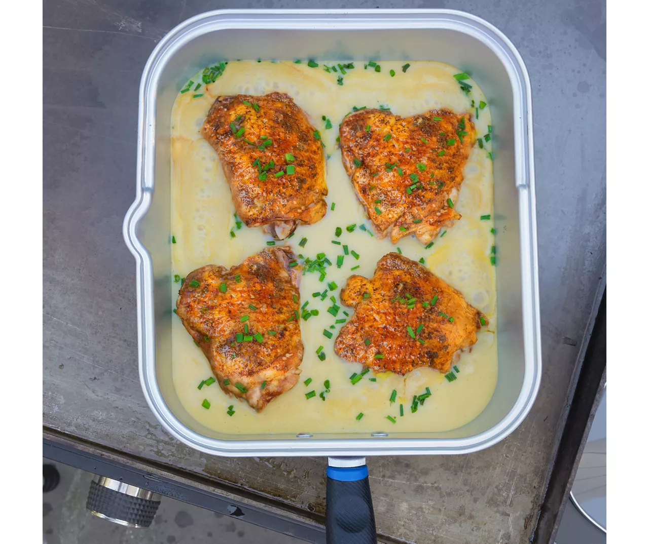 If you love your griddle, you’ll love the Razor multi-use fry pot and sauce pan. Deep fry all of your favorite foods including shrimp, chicken and onion rings. The convenient removable rack allows you easy access to drain the oil when you’re finished. Non-stick coated carbon steel is easy to clean and even comes with a lid to keep popping oil safe. The stay cool soft grip handle will protect your hands from the heat while allowing the ease of comfort while gridling. With a large 4-quart capacity, you can make anything in this sauce pan!