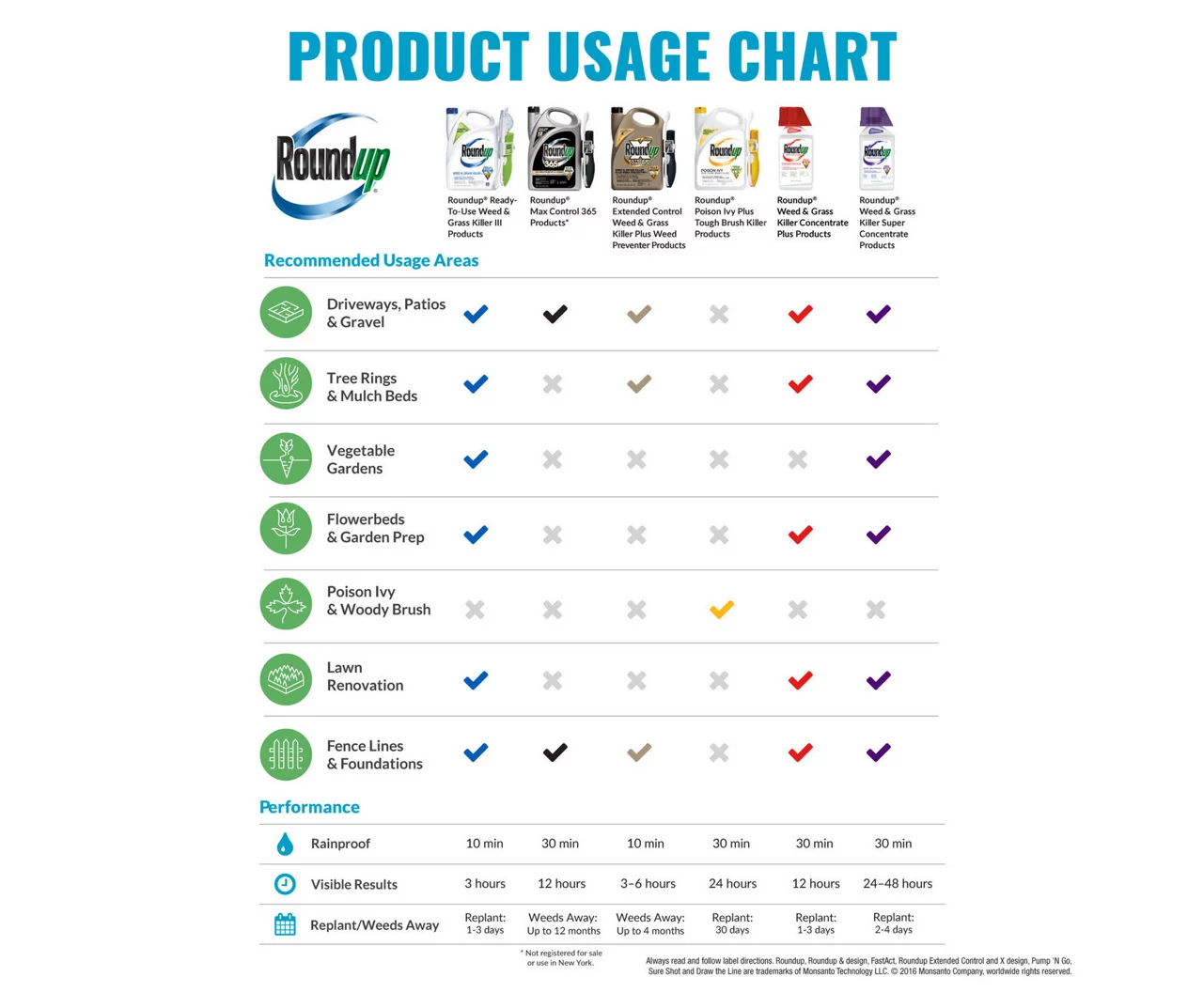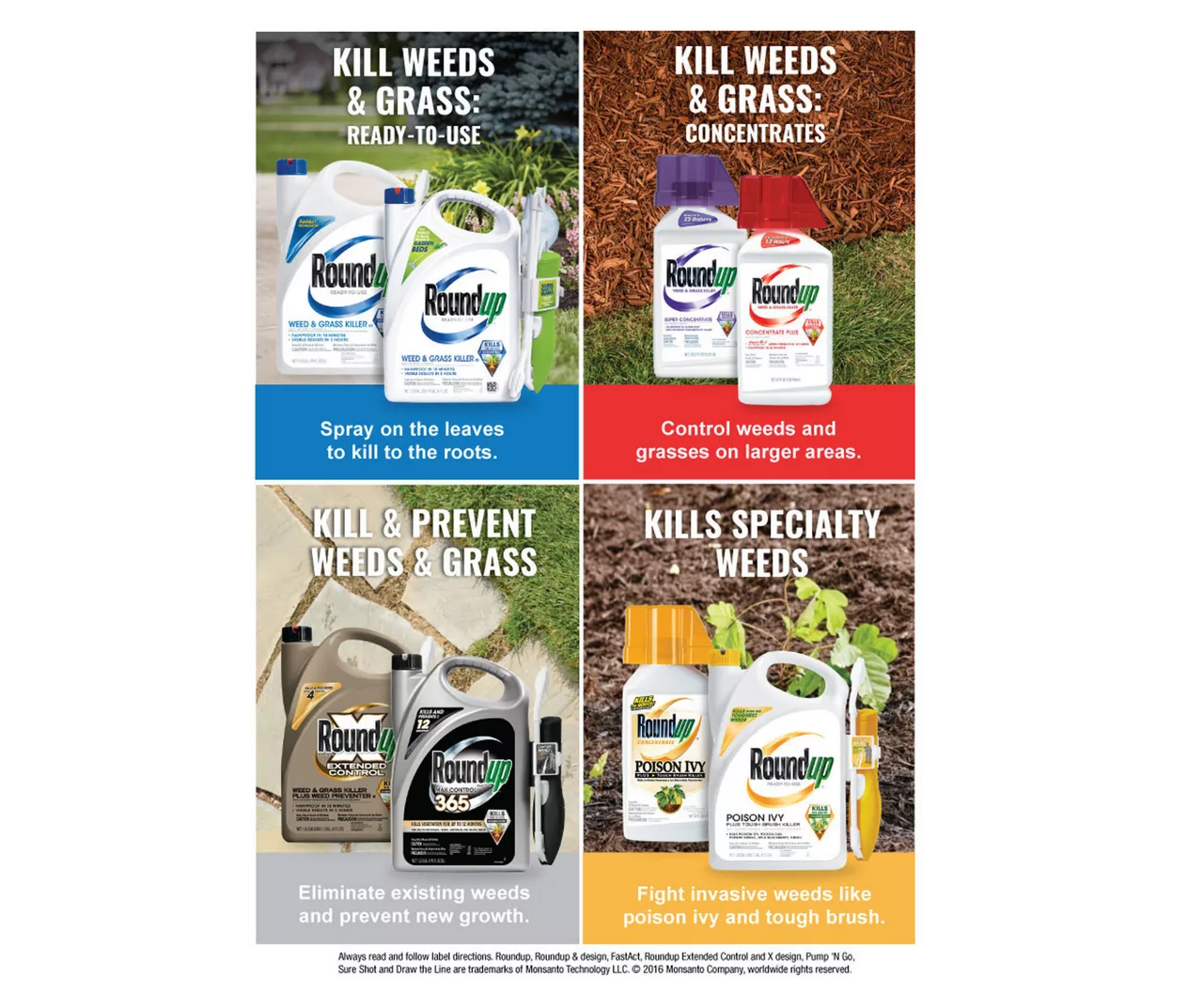 Kill the toughest weeds and grasses down to the root with Roundup Ready-To-Use Weed and Grass Killer III! The formula is ideal for use in and around vegetable gardens, flower beds, tree rings and mulched beds, as well as on cracks in driveways, walkways and patios. This convenient, no-mix formula is rainproof in just 10 minutes—and you get visible results in 3 hours. Kill weeds faster with Roundup.