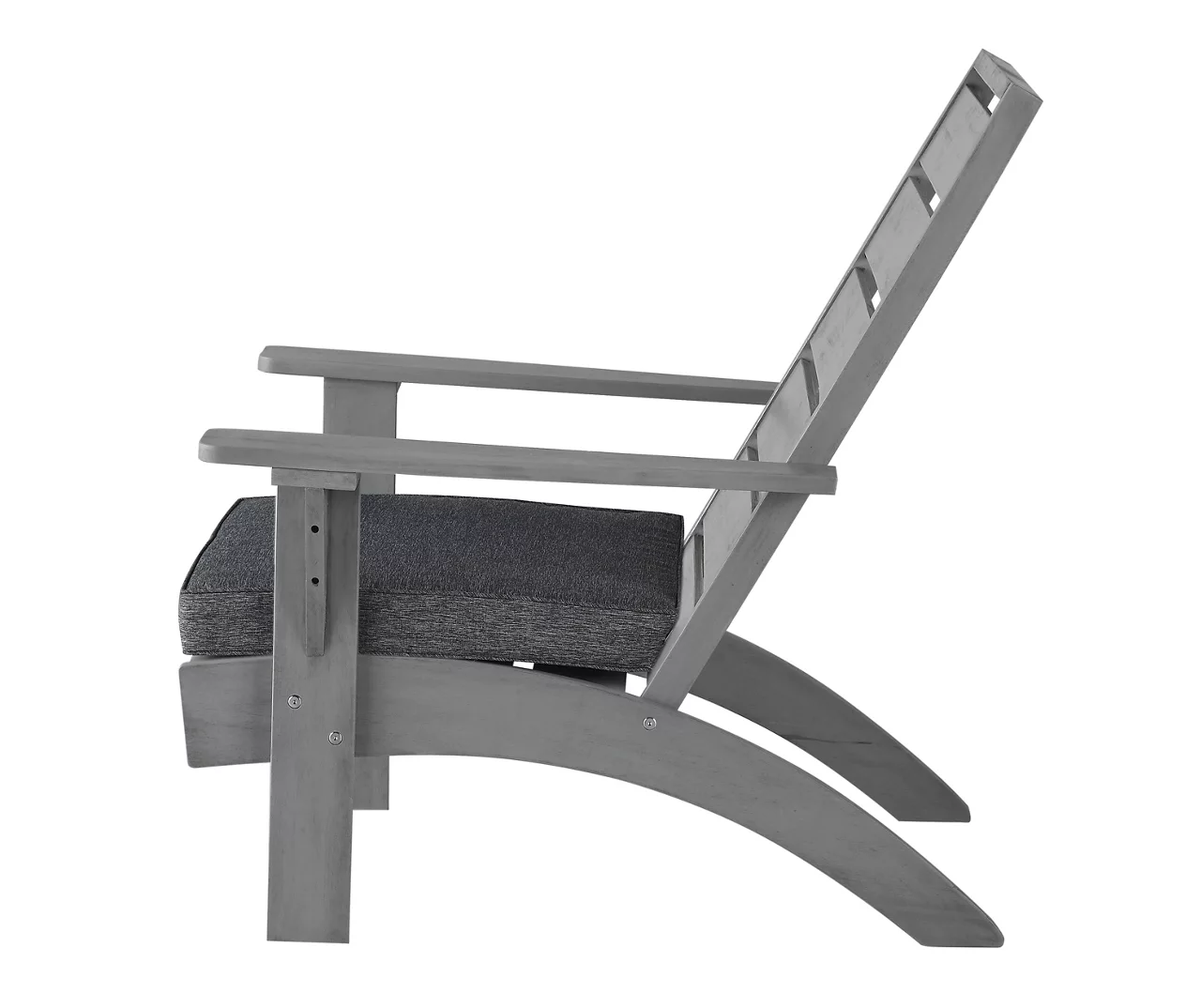 Add style and seating to your outdoor space with this Sea Grove cushioned patio chair. Made from durable and stylish acacia wood in a gray finish, its wide seat, high back and arms will bring comfort to your space. Topped with a fade-resistant gray fabric cushion, this chair is the perfect addition to a patio, deck or porch.