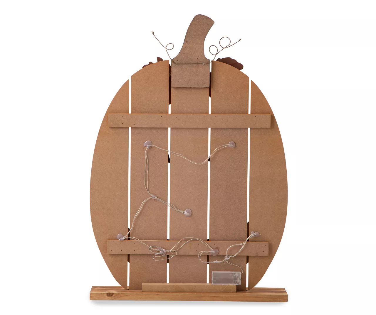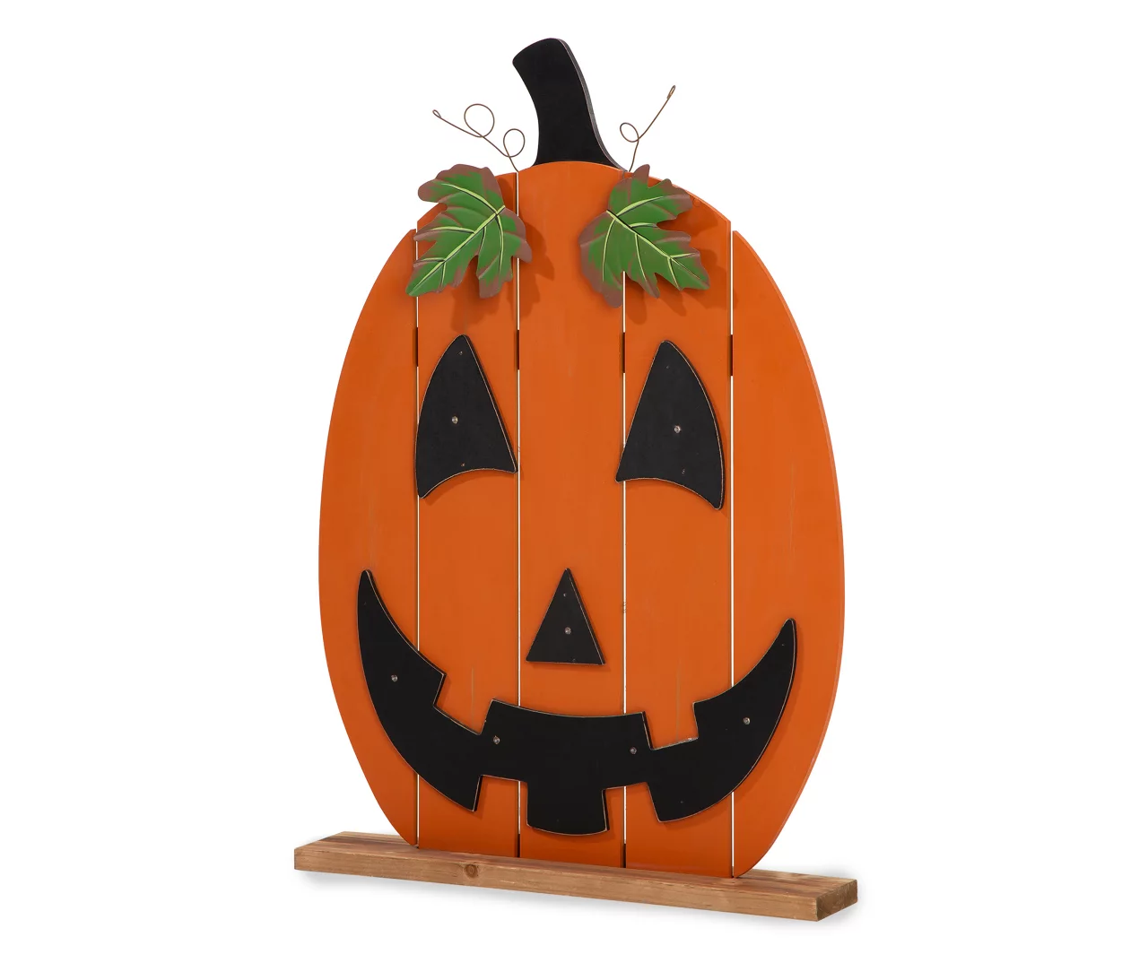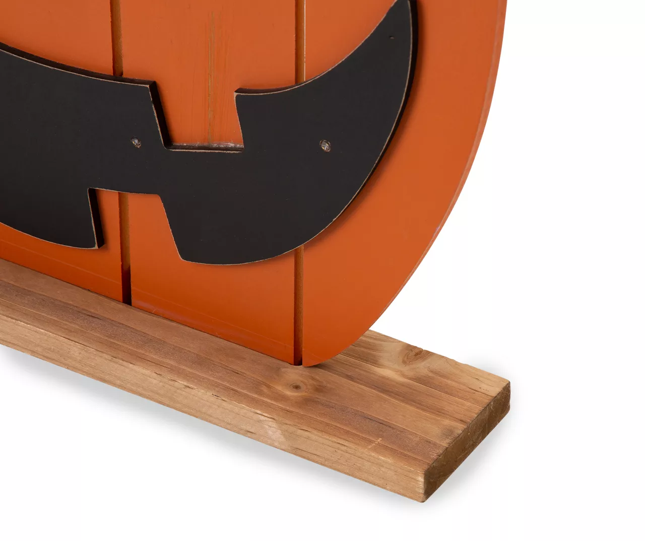 Creep out your guests with this charming piece of Halloween décor. This slatted light up jack o’lantern has an eye-catching orange color, a wooden base for stability, lovely metal leaf accents and seven stunning lights. The perfect way to brighten up your home this holiday.