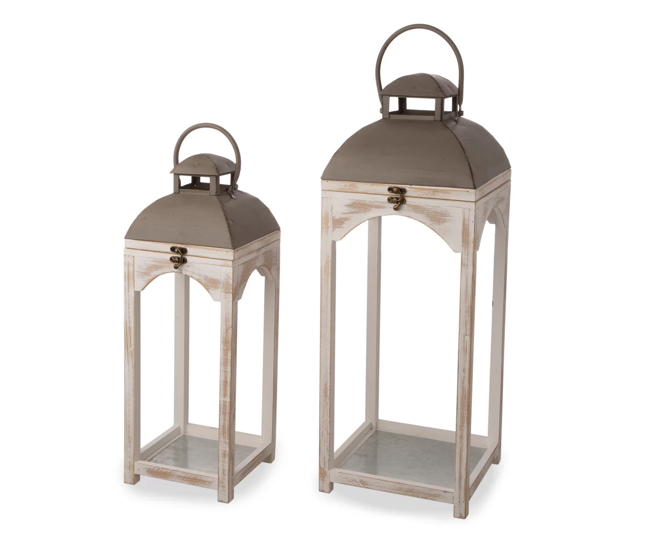 Designed with a traditional home décor aesthetic, this set of lanterns also features a weathered finish for the warm, heirloom feel. Display them together or stagger them throughout the space. They’re a wonderful addition to a mantel, countertop, covered front porch and any place you need a soft source of light.