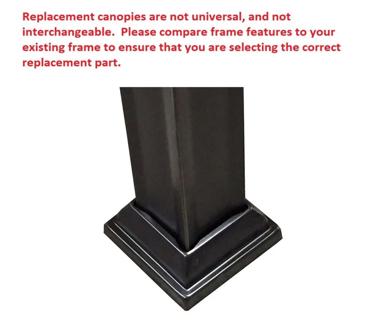 - Refer to pictures in image gallery to help identify the correct replacement part for your frame