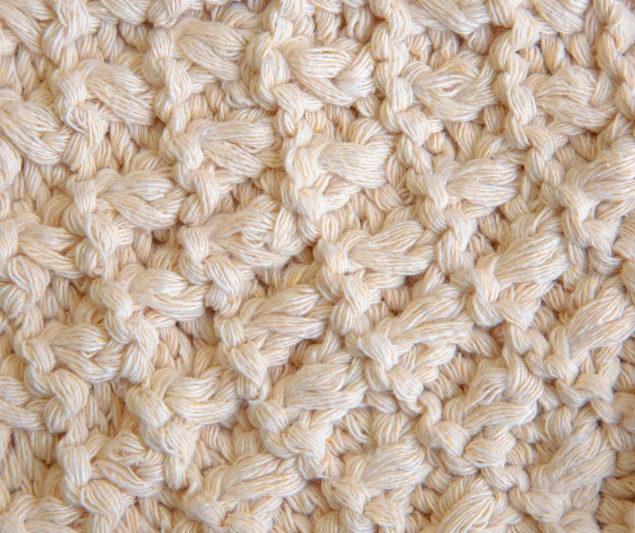 - Round ottoman upholstered in a beige knit fabric
